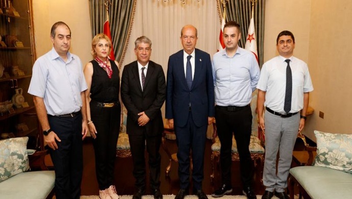 Cumhurbaşkanı Ersin Tatar, Tüm Bürokratlar ve İş İnsanları Federasyonu (TÜMBİFED) Genel Başkanı Mehmet Hüsrev ve beraberindeki heyeti kabul etti