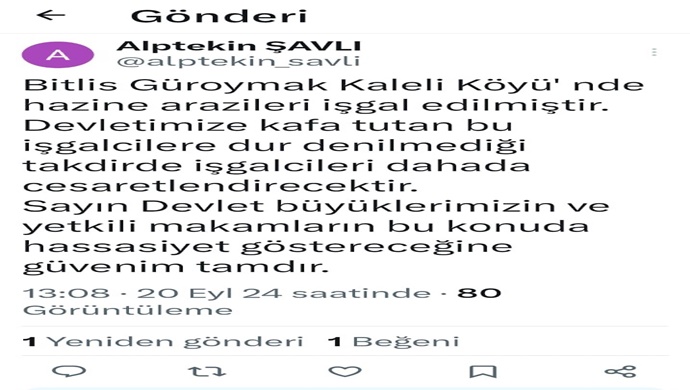ALPTEKİN ŞAVLI `DAN BAKAN MURAT KURUM `A ÇAĞRI