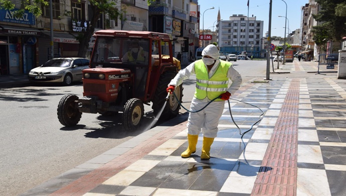 VİRANŞEHİR’DE CADDELER KORONAVİRÜSE KARŞI İLAÇLANDI