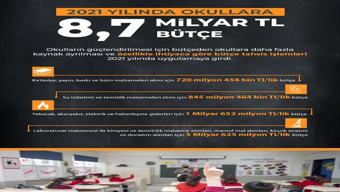 Millî Eğitim Bakanlığı ,2021 yılında 8,7 milyar lira bütçe kullandı