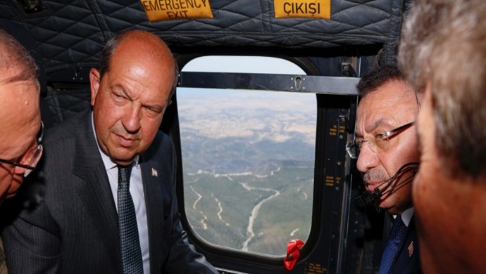 Cumhurbaşkanı Ersin Tatar ile Türkiye Cumhuriyeti Cumhurbaşkanı Yardımcısı Fuat Oktay yangın bölgesinde incelemelerde bulunarak ortak açıklama yaptı