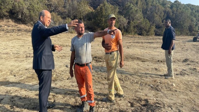 Cumhurbaşkanı Tatar, Dipkarpaz’daki yangın bölgesinde incelemelerde bulundu