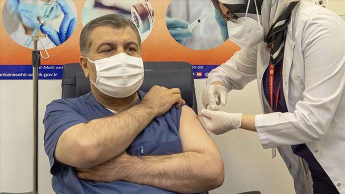Sağlık Bakanı Fahrettin Koca, dün akşam saatlerinde Bilim Kurulu Üyeleriyle gerçekleştirdiği toplantı sonrasında tüm Bilim Kurulu üyeleriyle Ankara Şehir Hastanesinde gelerek acil kullanım onayı verilen ilk CoornaVac aşısını yaptır. Sağlık Bakanı’nın aşısının tamamlanmasının ardından Bilim Kurulu üyelerine de CoronoVac aşısı uygulandı.