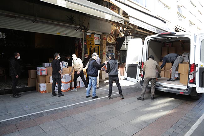 Pandemi sürecinde zor günler yaşayan, dükkanını açamayan, işsiz kalan Kadıköy esnafına KADIDER, Tarihi Çarşı Derneği, MODADER esnaf dernekleri aracılığıyla gıda kolisi dağıtıldı.